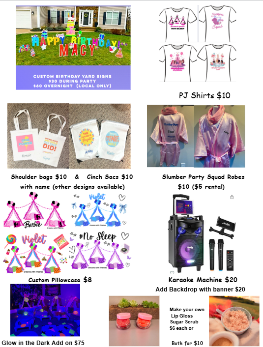 9. Activities add on: Make your own lip balm, birthday bingo and craft (ask for current selections)